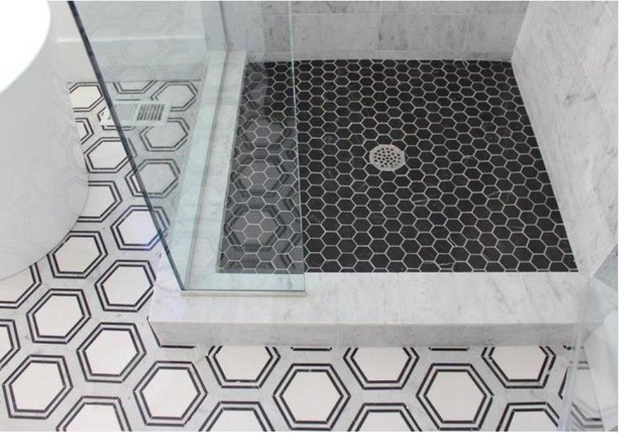 By choosing a black marble with white veining like in this maravilla sable those are just a few of our favorite bathrooms that feature hexagon tile.